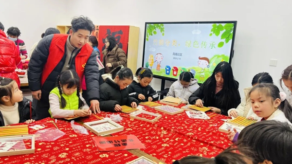 近日,在海盐县望海街道凤凰社区文化礼堂内,一场独具匠心的活动将看似不相关的垃圾分类与非遗竹编画巧妙融合,以开学第一课为契机,为孩子们和社区居民开启了一段极具创意又饱含温情的 “绿色之旅”。