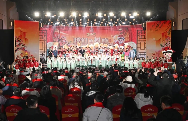 1月22日是农历腊月廿三,走进桃园村,只见家家户户张灯结彩、年俗市集人头攒动,红红火火的中国年味扑面而来。晚上7点半,开场歌舞《金蛇狂舞》《新年到幸福绕》正式拉开了晚会帷幕。在喜气洋洋的氛围中,绚丽灯彩“幻化”汇聚成一条璀璨夺目的“吉祥蛇”,寓意着新一年的吉祥如意与幸福安康。整场晚会历时一个半小时,来自全省11个地市、30多个文化礼堂的300多位演员登台亮相,用村歌、摇滚鼓词、曲艺串烧、舞蹈、越剧、魔术、情景歌舞等丰富多样的表演形式,为观众献上了一道体现原汁原味、充满泥土芳香的文化大餐。