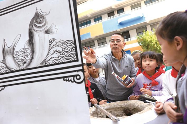 10月24日下午,国家级非遗项目嘉兴灶头画的省级代表性项目传承人赵生波,来到嘉兴市艺术小学,为孩子们上了一堂趣味横生的灶头画课,助力“非遗进校园”系列活动的开展。随后,赵生波又带孩子们来到校园内专门打造的灶台前现场教学,让孩子们深入了解灶头画的文化魅力,更好地传承和保护传统文化。(南湖晚报 记者 赵颖硕)