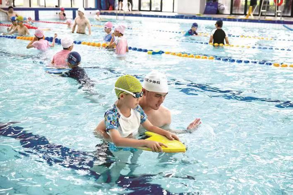 7月10日,在嘉兴秀湖学校游泳馆内开展的免费游泳课上,教练正指导学生学习游泳。据了解,今年嘉兴设置了涵盖学校、体育场馆和社会游泳机构等在内的41个公益培训点位,为全市三至五年级的小学生进行游泳公益培训,覆盖学生人数2万名以上。(来源:嘉兴日报 记者 王嘉宁)