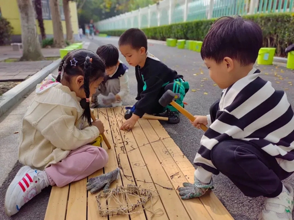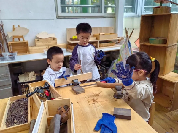 初冬暖阳晴空碧,嘉兴嘉善县实验幼儿园组织小朋友开展小木匠学手艺活动,在沉浸式体验中激发同学们的想象力、提高动手能力。
