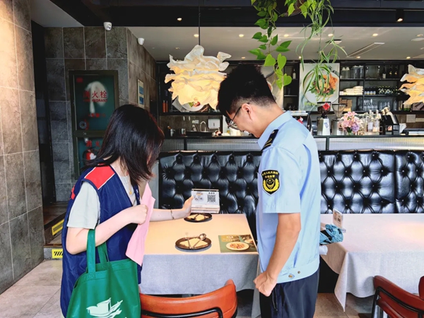 志愿者们走上街头、走进餐馆,发放“文明餐桌 从我做起”宣传单页,引导用餐顾客主动使用公筷公勺,并耐心讲解使用公筷公勺的重要性,引导更多人践行“餐有礼”。