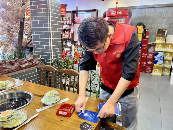 志愿者们走上街头、走进餐馆,发放“文明餐桌 从我做起”宣传单页,引导用餐顾客主动使用公筷公勺,并耐心讲解使用公筷公勺的重要性,引导更多人践行“餐有礼”。