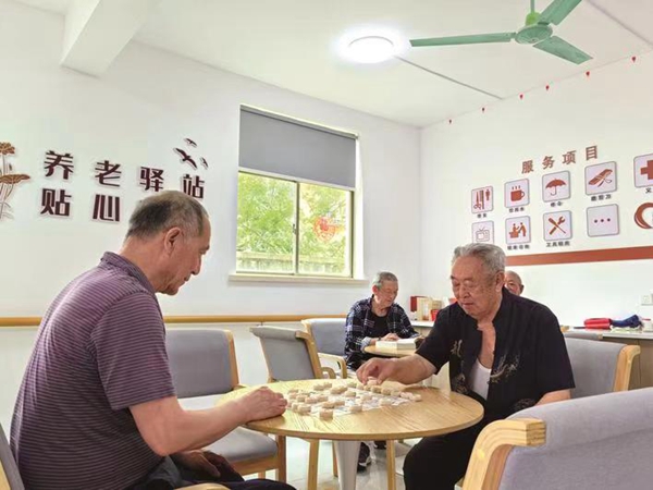 “吃你一个炮!”在海盐县城二二老区的养老驿站,83岁的李培荣正和老朋友下着象棋,不亦乐乎。