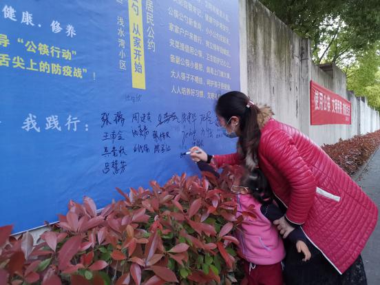 公约通过后迅速在浅水湾小区主入口和楼道入口处上墙“亮相”,居民纷纷在签名板上签字承诺践行公筷公勺小区公约。