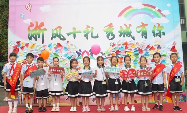 近年来,学校围绕文明校园创建,除了开展好“读书节”“艺术节”“体育节”“科技节”以及“入学礼”“成长礼”“毕业礼”等系列主题教育实践活动,还积极践行“浙风十礼 秀城有你”等文明实践活动,通过“筷筷”有礼——“首善南湖·餐有礼“等多元志愿服务项目,共行“浙风十礼”好风尚,积极传播有礼,主动践行有礼,携手营造“浙风十礼,从我做起”的校园氛围,不断引导学生养成文明行为习惯,助力学生“扣好人生第一粒扣子”。