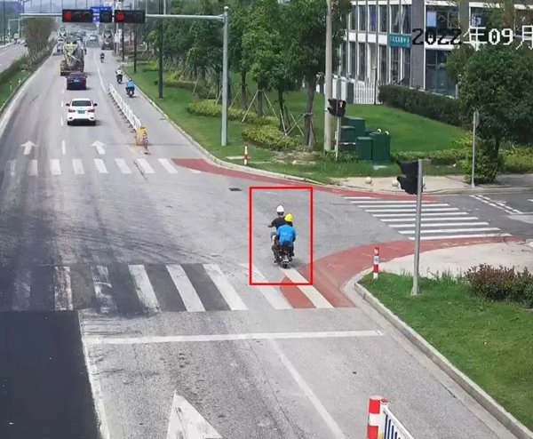 9月8日下午,七星中队通过“天眼行动”,发现在锦带河路纵一路口,段某骑电动自行车闯红灯。