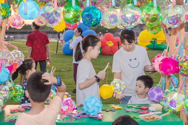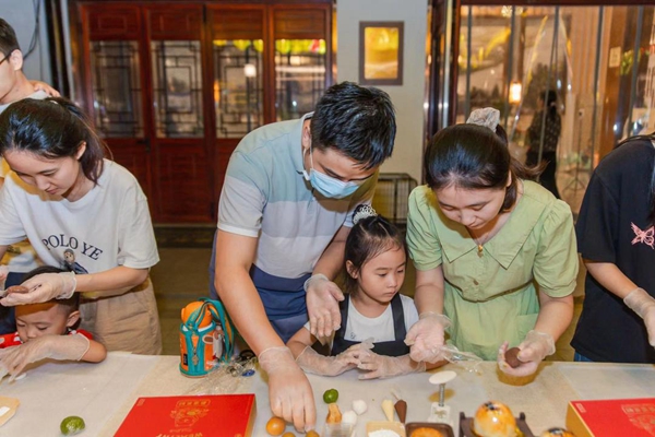 9月10日晚,2022年王江泾镇第五届荷花节——“清荷物语·月满中秋”园趣活动在王江泾运河文化公园如期举行,子活动青禾集市上有公泰和糕点、华腾猪肉、彩荷农业、凡白文化、木火拾遗等十余个摊位;在良库咖啡·长虹桥店门口,不少家长带着孩子一起制作手工冰皮月饼,用思念的味道传递内心的爱意。
