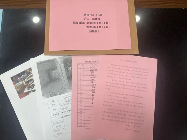 村民宋汉泉既是倡新团成员,也是移风易俗“宣讲员”和“督察员”。“我们要做到‘一户一档’,每个办酒席家庭的档案包括了宴席菜单、移风易俗承诺书、喜宴厅费用清单、垃圾分类检查单等11项内容,我们还专门设置了档案管理员,做好事前、事中、事后档案的收集、归类。只有这样,移风易俗工作才能有理有据地开展下去。”这是他上门开展工作时说的最多的几句话。