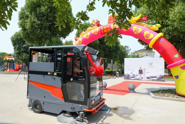 如今,这辆扫地车每天行驶在南庄村新村点内,不仅为村民营造洁净的生活环境,还成了村级移风易俗工作的“行走广告牌”。