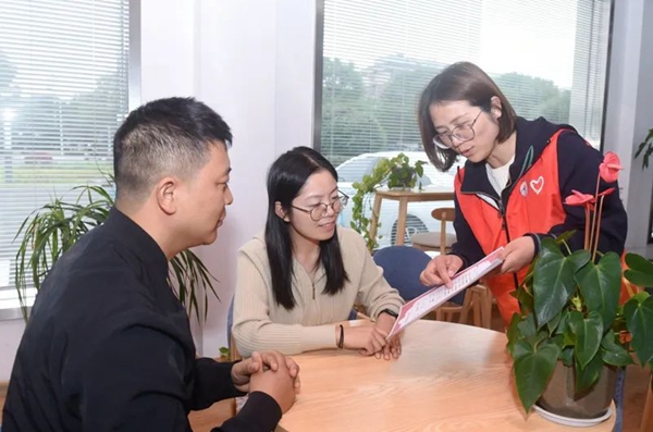 志愿者向村民宣传“平湖味·简约婚宴菜单”