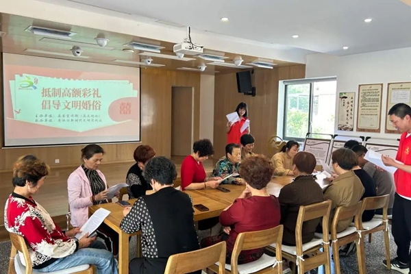 “控制礼金金额,提倡朋友不随礼”“提倡文明婚俗、控制婚宴桌数”……嘉善西塘镇充分利用新时代文明实践阵地,组织开展主题宣讲、文艺表演、新式婚礼等丰富多彩的主题宣传活动,让群众了解高价彩礼的不良影响。6月19日,荷池村新时代文明实践站的志愿者正向辖区居民详细讲解推进文明婚俗的重要意义,讲述当前社会上婚丧嫁娶大操大办,攀比浪费风气严重等陈规陋习的由来和危害,使居民群众深入了解移风易俗相关知识,营造勤俭节约、喜事新办、厚养薄葬、丧事简办的良好氛围。