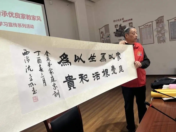 家风正,则民风淳。礼庙村新时代文明实践站邀请道德模范金友弟为村民们进行移风易俗宣讲,现场写下“家庭以爱为根 生活以和为贵”的家训,用身边事例、通俗易懂的语言向街巷邻居阐述家风家训与移风易俗之间的关联,引导街巷邻居抵制高价彩礼,传承良好婚俗。