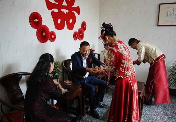在婚礼形式上,吴垚和范意鍚精简了常见婚礼中庞大的娶亲队伍和冗长的娶亲流程,将车队数量减少到了2辆,保留了“娶亲拜堂、敬茶改口、祭祖传家”等具有鲜明中国传统文化和地方民俗特色的婚礼环节。同时,取消了司仪和摄影摄像,由自己和亲朋好友担任主持人、证婚人以及摄影摄像师。