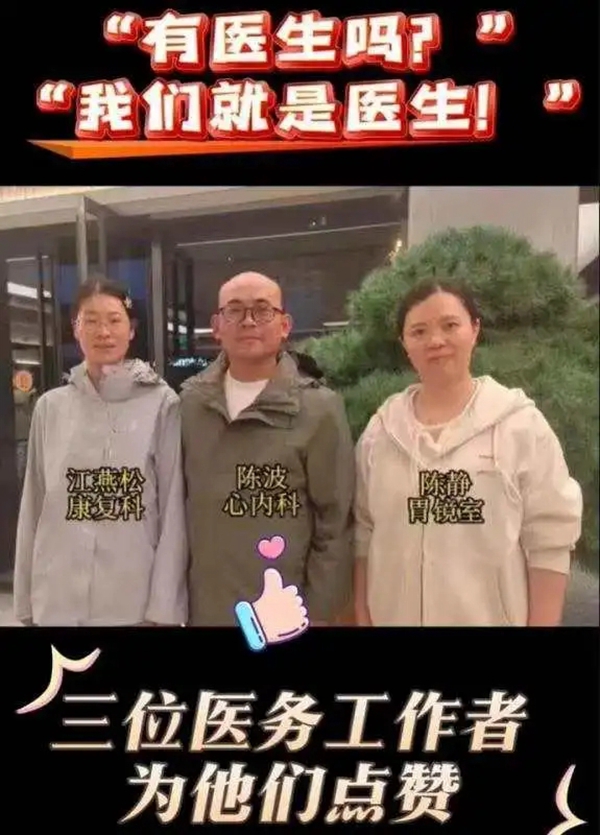 此次事件不仅体现了医务工作者救死扶伤的职业精神,也再次提醒公众掌握基本急救知识的重要性,尤其是在公共场所配备AED等急救设备的必要性。网友们纷纷点赞,称他们为“最美的风景”,称赞他们在关键时刻展现的专业素养和社会责任感,让这个“五一”假期充满了正能量与人情温暖。(来源:读嘉新闻客户端)
