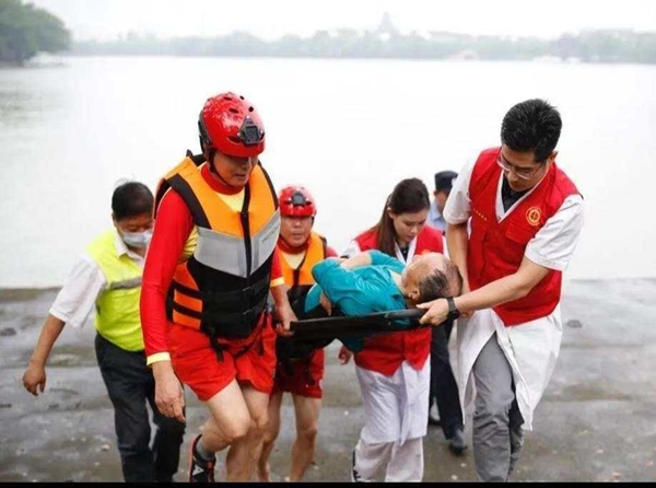 顾维宁到达溺水者身边,试图将救生浮具递给他,但溺水者已无力抓住。顾维宁没有退缩,他用尽全力,艰难地拖着溺水者向岸边游去。尽管今年已68岁,但顾维宁的每一次划水都显得坚定而有力。