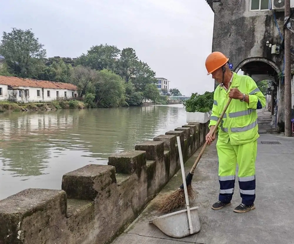 10月23日下午3点多,范大甫跟平日一样正在清理庆丰街54号附近垃圾桶区域。突然,他听到不远处传来微弱的“救命”声。“我们这里就一条河,河两边都是居民的房子和店面。”范大甫说,这里的居民有时会去河里打水浇花等。范大甫再仔细听时,没有了呼救声,但传来了水中扑腾的声音。“坏了,一定是有人落水了。”他循着声音向南塘陈氏老宅跑去,“我过去时就看到头发和两只手,人已经往下沉了。”范大甫吓出一身冷汗,赶紧呼救,但那时候的老街没什么人。他立马走下台阶,向落水阿姨喊话:“你别紧张,我把扫把递给你,你抓住。”