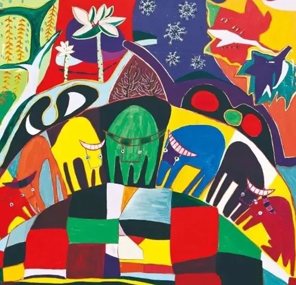 上世纪80年代,秀洲区文化馆组织辅导了20多位零基础绘画爱好者绘画,第一次看到农民画的缪惠新,被眼前的色彩与构图深深地吸引住了。“我是一个土生土长的农民,用拿农具的手去握画笔,这本身就具有不一样的色彩。”缪惠新说。工作之余,他把时间都留给了画画。