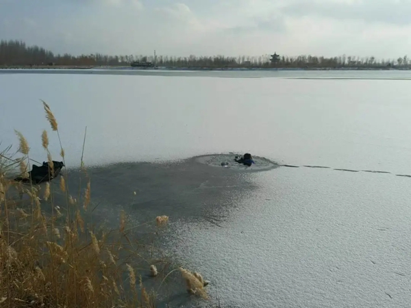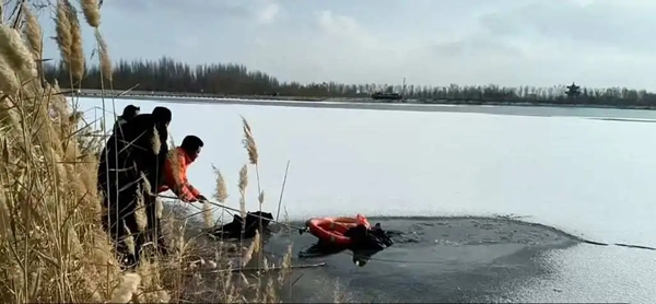 “当时天气比较冷,整个湖面被冰层覆盖,我们散完步准备回去了,就听到有人在喊‘救命’‘救命’。”沈一飞说。