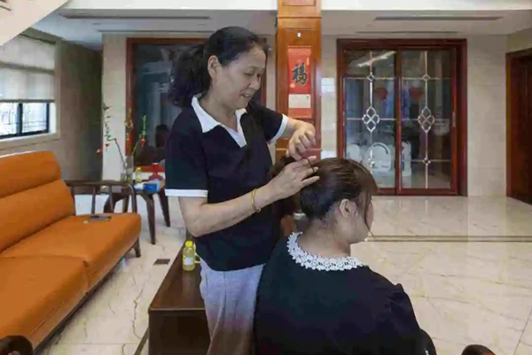 五年前老宅拆迁后,金美华一家搬进了缪家新村四层楼的新房,小孙也一同搬进了特意装修的“女儿”房。2025年夏天,小孙即将大学毕业,如今在县城一家医院实习,向她的心愿——成为一名护士又近了一步。懂事、孝顺、阳光是如今小孙身上的标签,平时积极参与各类志愿服务,尽自己能量帮助他人。她成长的点滴是金美华最大的快乐和幸福。前阵子,金美华不慎摔伤了腿,小孙心疼极了,不仅主动端茶送水地照顾金美华,还常常细心地帮金美华穿鞋。“这段时间辛苦你伺候我了!”“妈,您放心,等您老了,我还这样照顾您!”说起小孙,金美华一脸幸福?!敖酉吕淳拖M芩忱弦嫡业铰獾墓ぷ鳎偻笙胂刖褪窃绲闳梦冶Ц鏊镒?,哈哈!”