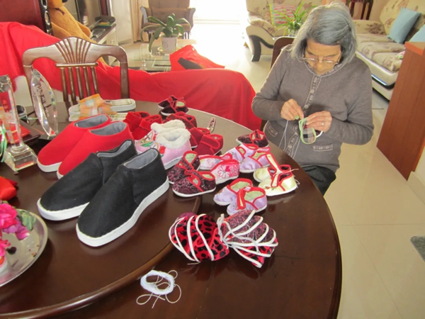 陆秀珍的一言一行,也深深影响着家人。儿子全星月说,因为母亲针线活好,又是当地的长寿老人,很多人为了讨个吉利前来求鞋,母亲每年要制作婴儿小布鞋300余双。“妈妈到哪里都会带一个手袋,这是她的‘移动工厂’,正是这样的见缝插针,她一年能做几百双鞋子。”在全星月印象里,母亲的手从没停歇过。除了缝制鞋子,母亲还坚持上老年大学,学会用手机上网。在网上看见好的文章和人物事迹,她也会分享在家族群里,以此告诉后辈们要不断学习,保持刻苦勤奋。